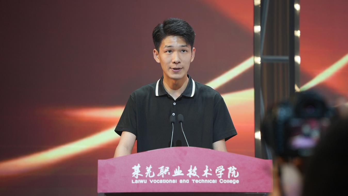 医学技术与护理系庄博凯代表毕业生深情致谢母校培养与师长教诲。他回顾在莱职三年的蜕变历程,从青涩学子成长为成熟青年,其间实训室里的专注钻研、理论课堂的求知探索、技能赛场上的激烈角逐,以及同窗间互助互勉的温暖点滴,皆成为青春印记。他表示,毕业学子将承载母校的深情嘱托与殷切期望,携所学技能与梦想信念奔赴四方,以“匠心”践行担当、以本领丈量天地,在强国建设新征程中绽放青春价值,于广阔天地间筑梦未来。