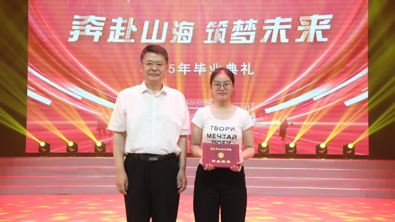 会上,学校党委书记孔祥敏为毕业生代表颁发毕业证书。