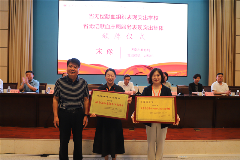 在2024年山东省无偿献血工作中,beat365在线唯一官网荣获“山东省无偿献血组织表现突出学校”“山东省无偿献血志愿服务表现突出集体”两项殊荣。会上宋豫为学校进行了颁奖,并肯定了学校长期以来在公益实践方面的积极贡献。