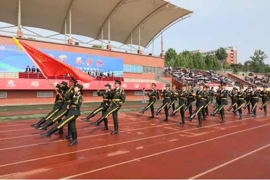 5月8日上午,学校2025年春季运动会在田径场开幕。校领导出席开幕式。各单位主要负责人、全体运动员、裁判员以及2024级学生参加开幕式。