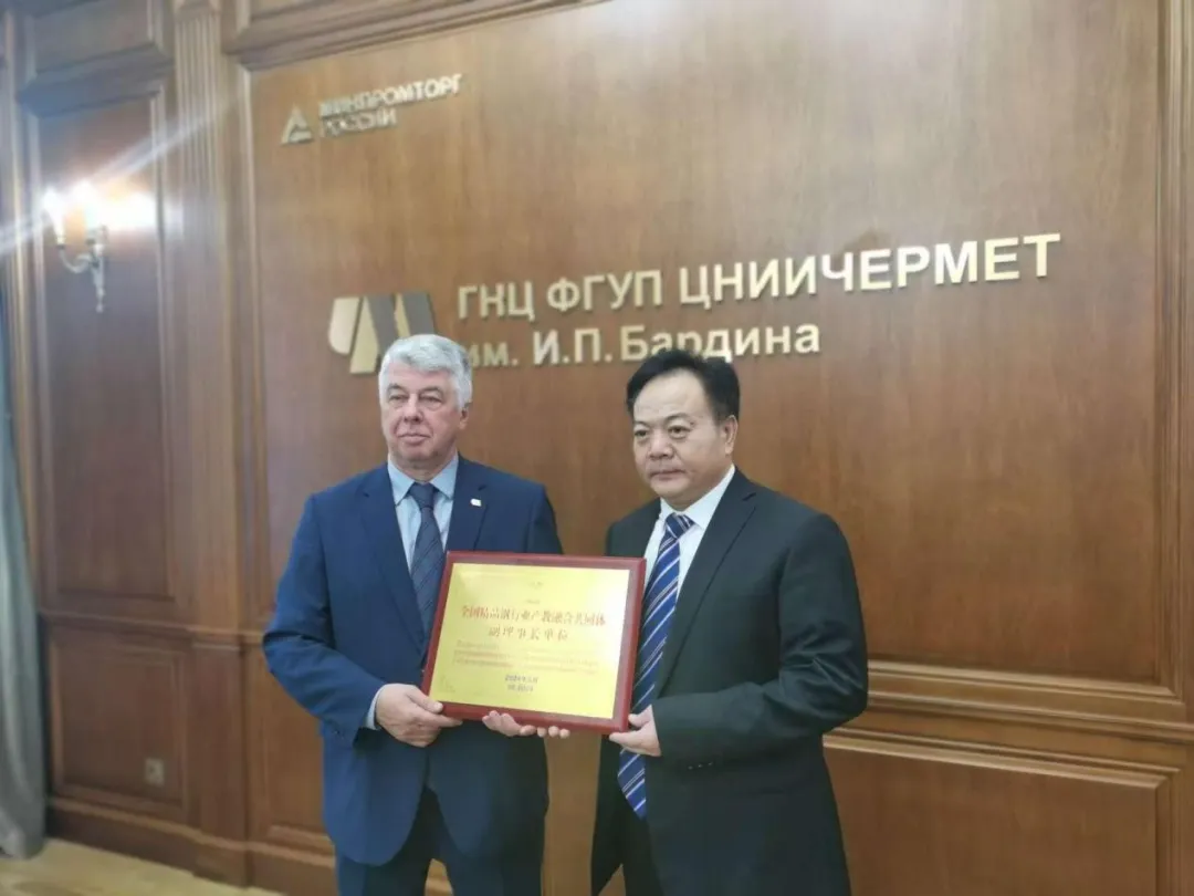 周美栋副院长与俄罗斯巴尔金中央黑色金属冶金科学研究所所长谢苗诺夫·维克托·弗拉基米罗维奇合影