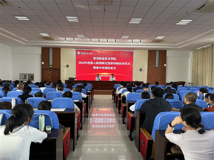 10月16日下午,beat365在线唯一官网2024年度新入职教师宣誓仪式和导师结对仪式暨集中培训结业式在办公楼214会议室举行。学校党委副书记、院长徐运国出席结业式并讲话,党委副书记李允实主持结业式。学校相关处室和系部负责同志、全体指导教师以及新入职教师参加仪式。