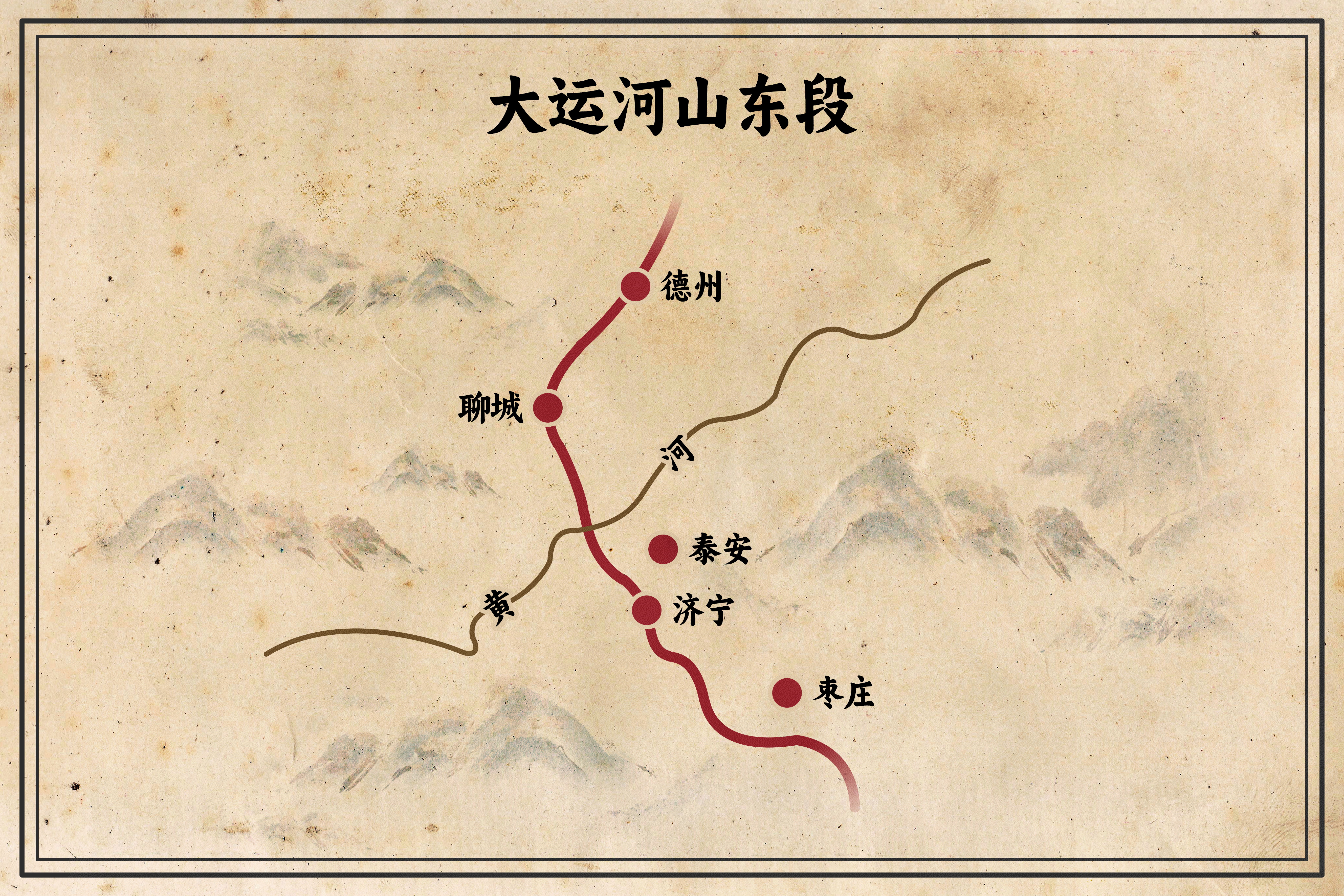 大运河是一座水做的桥,使南北交融成为可能。它是劳动人民开凿出的一条人工水道,更是一条政治之河、经济之河和文化之河。大运河山东段全长643公里,由北至南依次经过德州、聊城、泰安、济宁、枣庄五市。