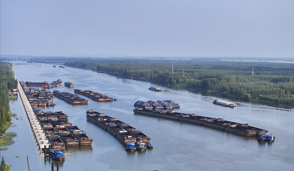 (大运河山东济宁微山段,船舶往来穿梭。来源:视觉中国)