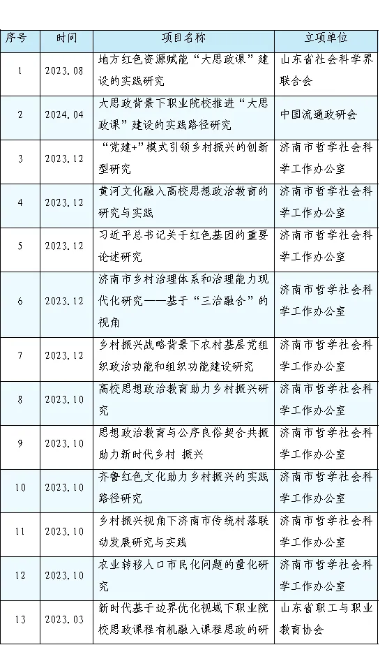 在调研基础上,《齐鲁红色文化助力乡村振兴的实践路径研究》等5项课题立项2023 年度济南市哲学社会科学规划课题乡村振兴专项课题。在此基础上,发表相关论文多篇,为乡村文化振兴提供了学理支撑。
