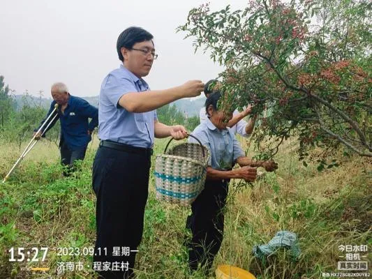 农忙时节,帮助腿脚不便的老年人采摘花椒等农作物