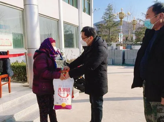 为村里的老年人发放春节福利
