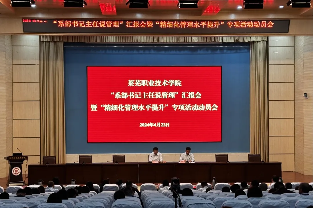 4月22日下午,学校在图信中心报告厅开展“系部书记主任说管理”汇报会暨“精细化管理水平提升”专项活动动员会。党委领导班子成员出席会议。党委书记孔祥敏作讲话并安排精细化管理工作,党委副书记李允实主持会议。