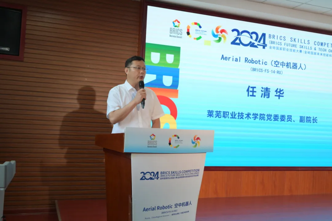 任清华首先代表学校向在大赛中取得优异成绩的单位和个人表示热烈的祝贺,向莅临指导工作的各位领导、专家和为大赛付出辛勤劳动的仲裁员、裁判员和工作人员表示衷心的感谢。他表示,此次金砖国家职业技能大赛空中机器人赛项是对参赛选手技能水平的全面检阅,是参赛选手相互学习、取长补短、共同提高的良好平台。在本次比赛过程中,选手们克服重重困难,奋力拼搏,彰显了精益求精的工匠精神和百舸争流的竞技风采,展现了事争一流的进取意识和携手共进的团队精神,赛出了水平、赛出了风格。希望全体参赛选手在今后的学习、工作和生活中,始终保持锐意进取、拼搏奋进的精神,大力弘扬劳模精神、劳动精神、工匠精神,争做空中机器人技术领域的开拓者、耕耘者,让“一技之长”成就精彩人生的故事不断上演,让追求卓越的精神与情怀薪火相传。学校将以此次大赛为契机,进一步加强与各兄弟院校的交流与合作,实现优势互补、共创双赢,为培养更多高素质技术技能人才、推动新时代职业教育高质量发展贡献力量。