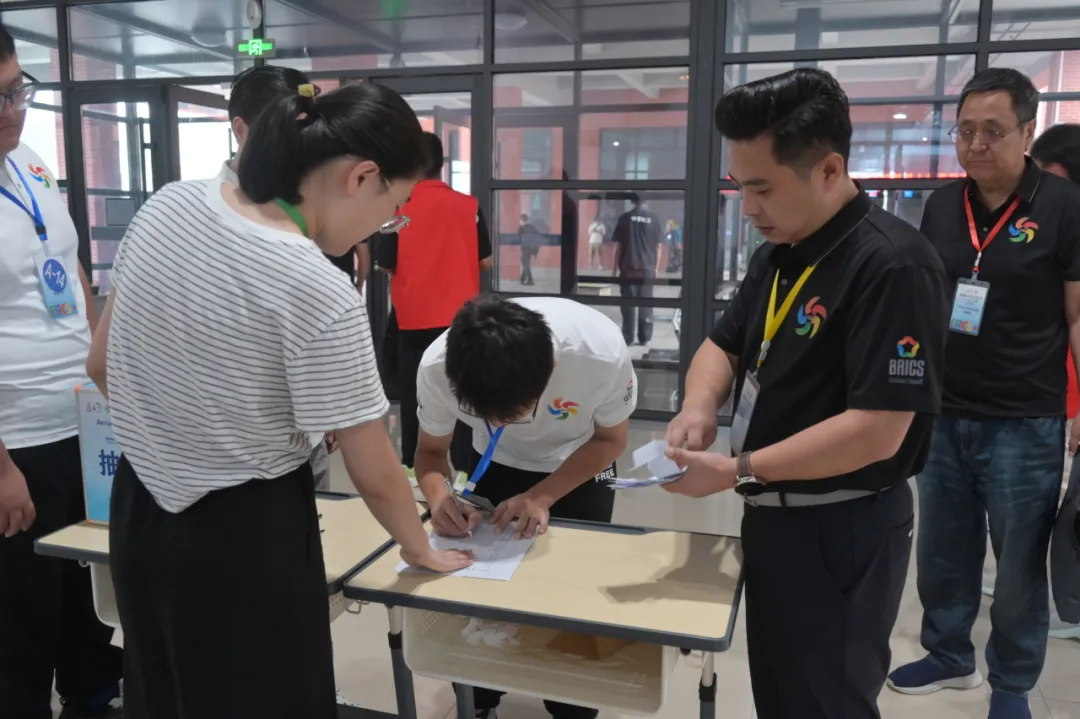 7月17日下午,举行了赛项说明会,对竞赛规则、职责和须知进行了说明,抽取了比赛抽签的顺序号。