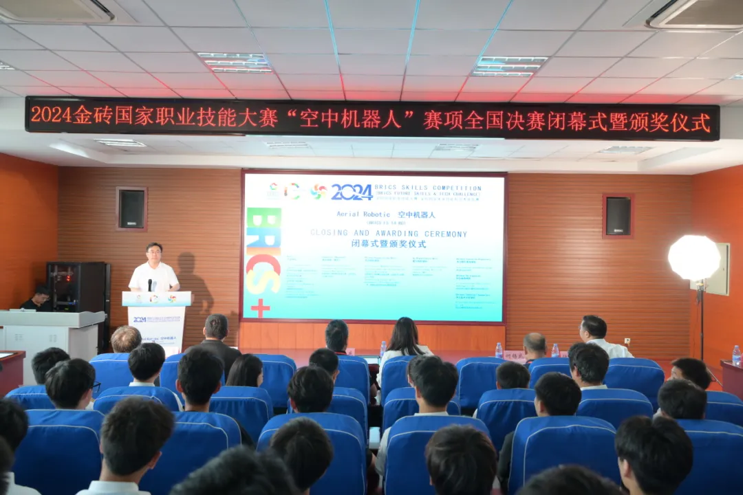 7月19日下午,2024金砖国家职业技能大赛空中机器人赛项全国选拔赛暨国内决赛在学校闭幕。金砖国家工商理事会技能发展、应用技术与创新中方工作组执行总监崔雪艳,大赛仲裁长、天津市工艺管理协会副会长、教授沈兴东,裁判长(首席专家)、武汉城市职业学院机电学院副院长何锡武,学校党委委员、副院长任清华,北京企学研教育科技研究院竞赛合作处副主任张俊猛,西安天翼智控教育科技有限公司赛事部经理郭睿出席闭幕式。学校相关处室负责同志以及大赛专家、裁判、各参赛队参加闭幕式。