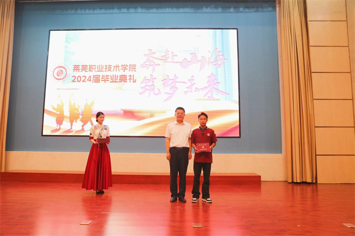 会上,党委书记孔祥敏致辞并为毕业生代表颁发毕业证书。孔祥敏以《奔赴山海 筑梦未来》为题作毕业致辞。他向全体毕业生表示祝贺,向一直以来付出辛勤汗水的教师表示感谢并致以崇高的敬意。他表示,在校三年,同学们斩获全国、全省职业院校技能大赛奖项39项,11名学生荣获国家奖学金,254名同学被评为山东省优秀毕业生,500多名同学考入心仪的本科院校继续深造,167名同学应征入伍,为学校的高质量发展作出了突出贡献。他对毕业生提出了三点希望:要心怀感恩,不断赶超,继续秉承“感恩 赶超”的校训,以感恩之心对待身边每一份支持,以赶超姿态奋力向前,让人生之路越走越开阔;要不惧“内卷”,拒绝“躺平”,怀抱梦想又脚踏实地,眼里有光且心中有梦,沉下心,扎下根,积蓄能量,厚积薄发,在机会来临时脱颖而出;要丰富知识,启智增慧,永葆内心的求知欲,在实践中锤炼本领、创造新知,在持续学习中实现自我提升,通过终身学习去迎接人生的挑战。