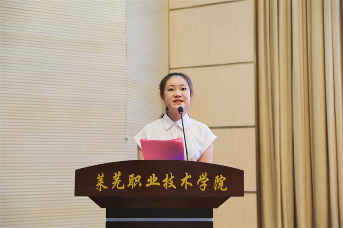 智能制造系张晓毓代表在校生发言,祝贺学姐学长们顺利完成学业,祝福他们奔赴新的征程,谱写人生新的篇章,祝愿所有的同学能够以“小我”融入“大我”,不断锤炼技能,磨砺品格,成长为能工巧匠,大国工匠,为祖国的建设贡献青春力量。