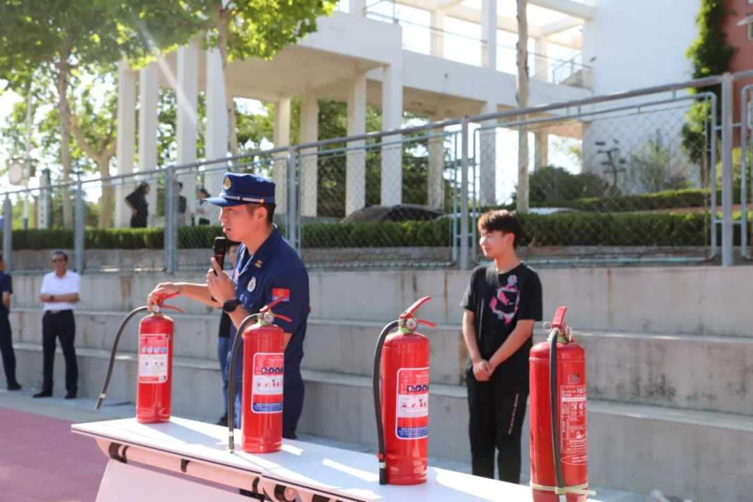 演练结束后,莱芜消防救援大队成员对师生进行了消防技能培训,详细演示了灭火器、消防栓等消防器械的正确使用方法和扑救要领,并传授了使用口诀:“一提二拔三握四压”。师生们积极参与实操,有效提升了安全意识和技能。