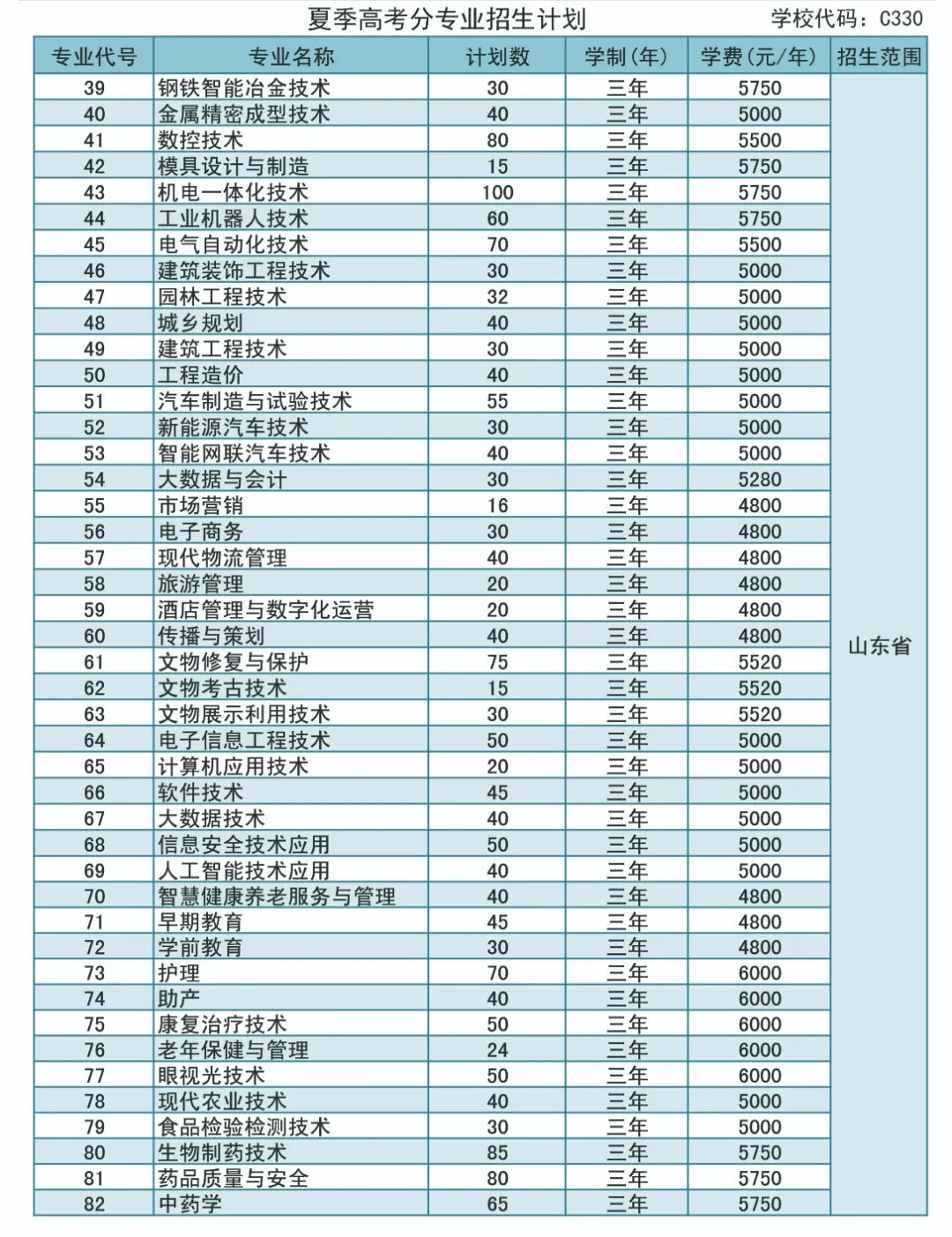 夏季高考分专业招生计划