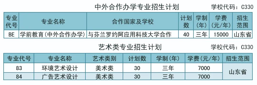 中外合作及艺术类专业招生计划