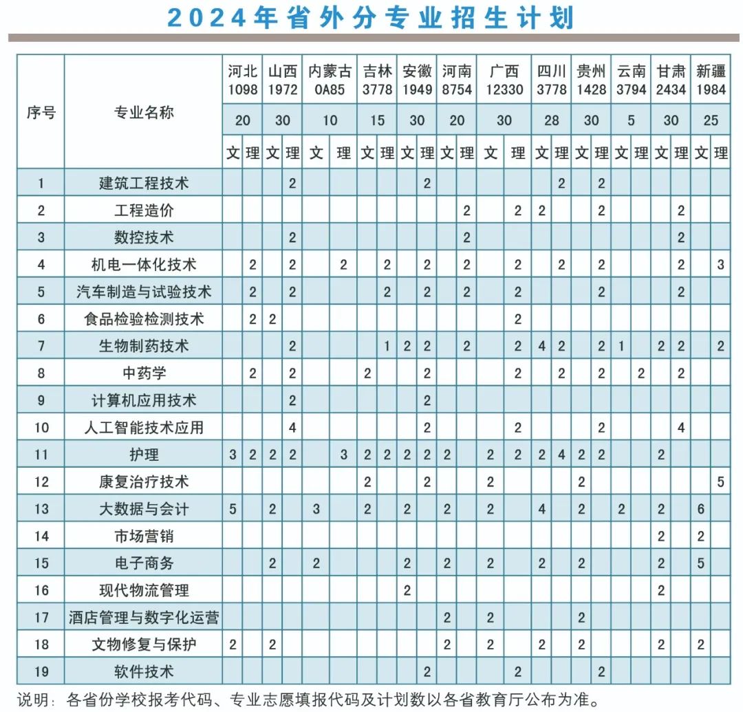 省外分专业招生计划