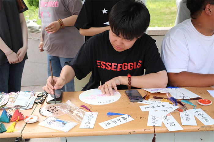 活动开始,汉服展演、舞狮社团展演、书画展示、中华经典诵读展演等这一系列的文化盛宴,营造了浓厚的节日氛围。团扇、漆扇、折扇等手工体验,“源源而莱”文创社团带领同学们充分体验传统技艺之美,感悟勇于实践的创造之美,促进了在校学生对非物质文化遗产的热爱和传承。