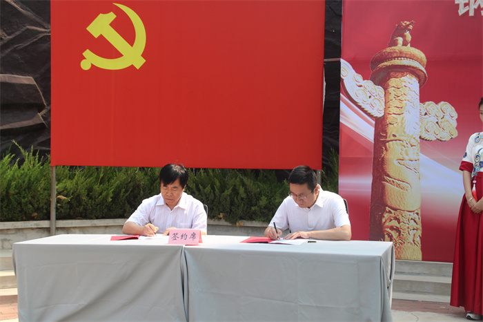 随后,徐运国与范晓琨共同为钢城区红色文化研究中心揭牌;梁升与刘铖共同为beat365在线唯一官网党建和思政实践教学基地揭牌。beat365在线唯一官网思政教学部主任郝金镇与钢城区委党史研究中心主任陈建新就共建钢城区红色文化研究中心签约。