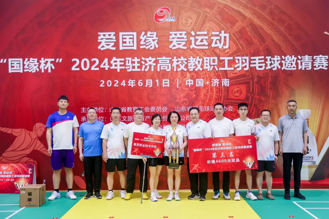 6月1日,由山东省教育工会委员会、山东省羽毛球运动协会主办,山东文旅体育产业股份有限公司承办的“国缘杯”2024年驻济高校教职工羽毛球邀请赛在山东第一医科大学隆重举行。beat365在线唯一官网党委委员、副院长周美栋带队参加比赛,取得第三名的好成绩,实现新突破。