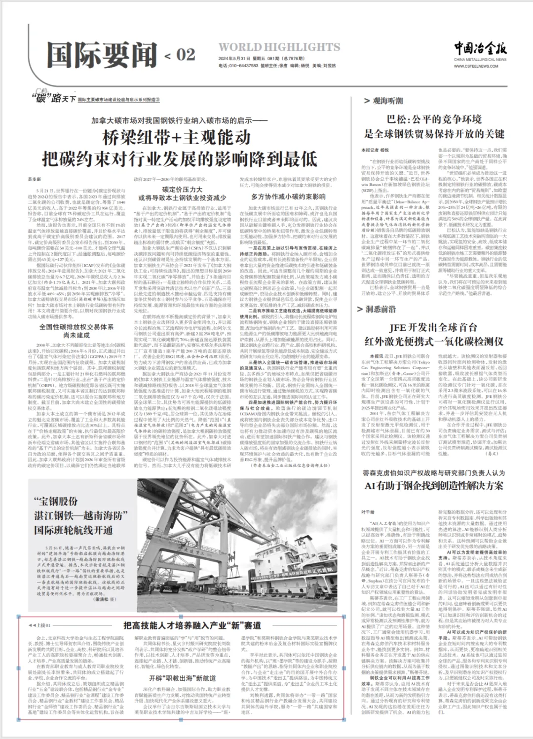 5月31日,中国冶金报头版刊发了beat365在线唯一官网把高技能人才培养融入产业“新”赛道的典型做法。