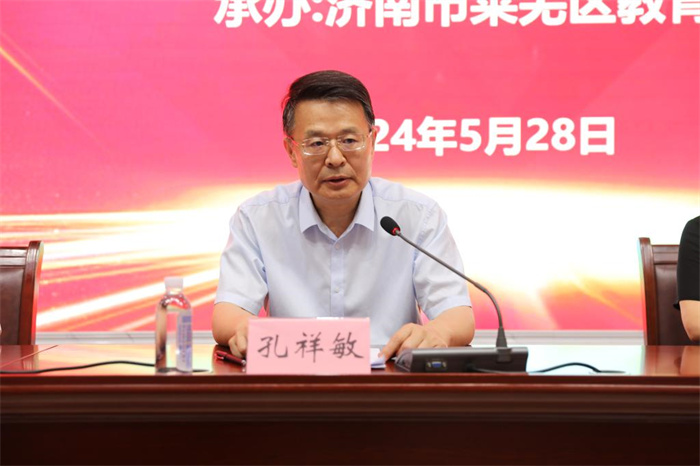 孔祥敏在致辞中表示,大中小学思想政治教育一体化建设意义重大,是加快建设教育强国的重要组成部分,是解决“培养什么人、怎样培养人、为谁培养人”的重要抓手,是全面落实立德树人根本任务的关键一环。今天召开的大中小学思政课一体化建设推进会就是学校与济南市莱芜区教育和体育局共同落实省市要求的一项有力举措,必将推动大中小学思政课一体化建设的深入开展,走出一条地方特色一体化建设的新路子。学校将不断强化高校使命自觉,准确把握高校职责定位,服务地方、服务社会,积极和与会单位精诚合作、携手并进,共同促进大中小学思政课一体化建设迈上新的台阶。