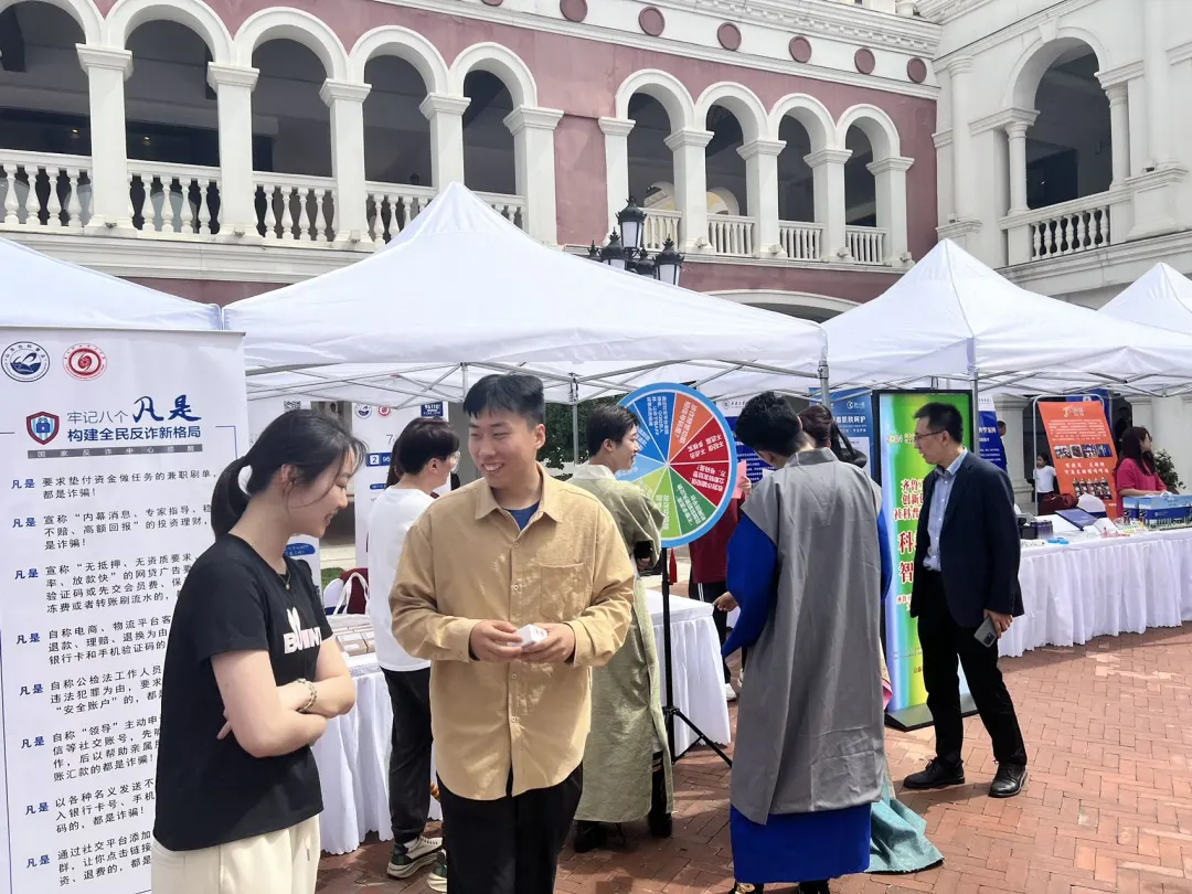 5月11日,由山东省委宣传部、山东省社科联、济南市委宣传部、济南市社科联主办的山东省暨济南市第二十一届社会科学普及周开幕式在槐荫区开幕。本届社科普及周的主题是“共享一堂课”,学校社科联聚焦本次主题,精心设计了 “防范电信网络诈骗,提高全民反诈意识”的活动现场。丰富多彩、互动十足的展台,大气醒目的宣传展板、富有创意的的宣传单、精彩有趣的小游戏、别具一格的精美奖品,吸引广大市民前来打卡体验。