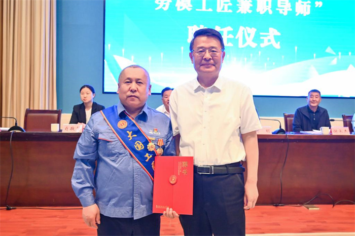 随后,关明、谢承杰共同为“全国机械冶金建材行业工匠学院”揭牌;学校党委委员、副院长任清华与两位大国工匠签订“工匠冠名班”协议;孔祥敏分别向两位“劳模工匠兼职导师”颁发聘书;省、市总工会和教育厅(局)领导分别为两位大国工匠“创新工作室”揭牌。