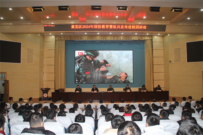 莱芜区人武部相关人员现场解读了2024年征兵优惠政策,并面对面精准宣传发动,从入役保障、服役发展、退役安置、自我发展等多个方面,结合莱芜区实际对同学们的提问进行了答疑。