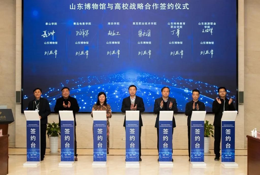 12月16日,“博物馆与高校融合发展座谈会暨山东博物馆与高校战略合作签约仪式”在山东博物馆举办,山东省文化和旅游厅二级巡视员王涛,山东省教育厅高等教育处副处长王京龙,山东大学历史文化学院院长方辉,山东省文化和旅游厅博物馆与社会文物处副处长陈宇,山东博物馆党委书记、馆长刘延常,包括学校在内的山东省17所高校的嘉宾参加会议。党委副书记、院长徐运国代表学校出席签约仪式并作主旨发言。