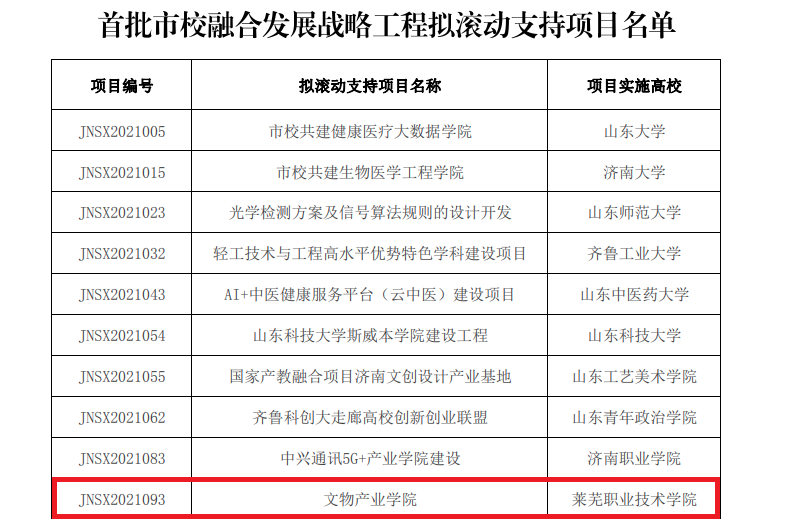 今年下半年,市教育局组织开展了市校融合发展战略工程首批项目结项验收和第二批项目立项评审工作。学校高度重视,配合市教育局、市财政局,组织各项目组进行了两次现场考察、答辩、第三方审计等验收工作,最终经专家验收、评审和联席会议审议,学校于2022年首批申报的长者福祉学院依托下健康养老专业群发展规划项目、中德智能制造产业学院项目、文物产业学院项目、济南黄河流域生态环境保护工程研究中心平台建设项目等4个项目顺利通过验收,全部合格。其中,文物产业学院获批进行滚动支持。学校获批立项的第二批济南市市校融合发展战略工程项目分别是,智能网联汽车产业学院项目、生物制药产业学院项目、5G+数智未来技术产业学院项目、东南亚职业教育境外办学联盟项目。