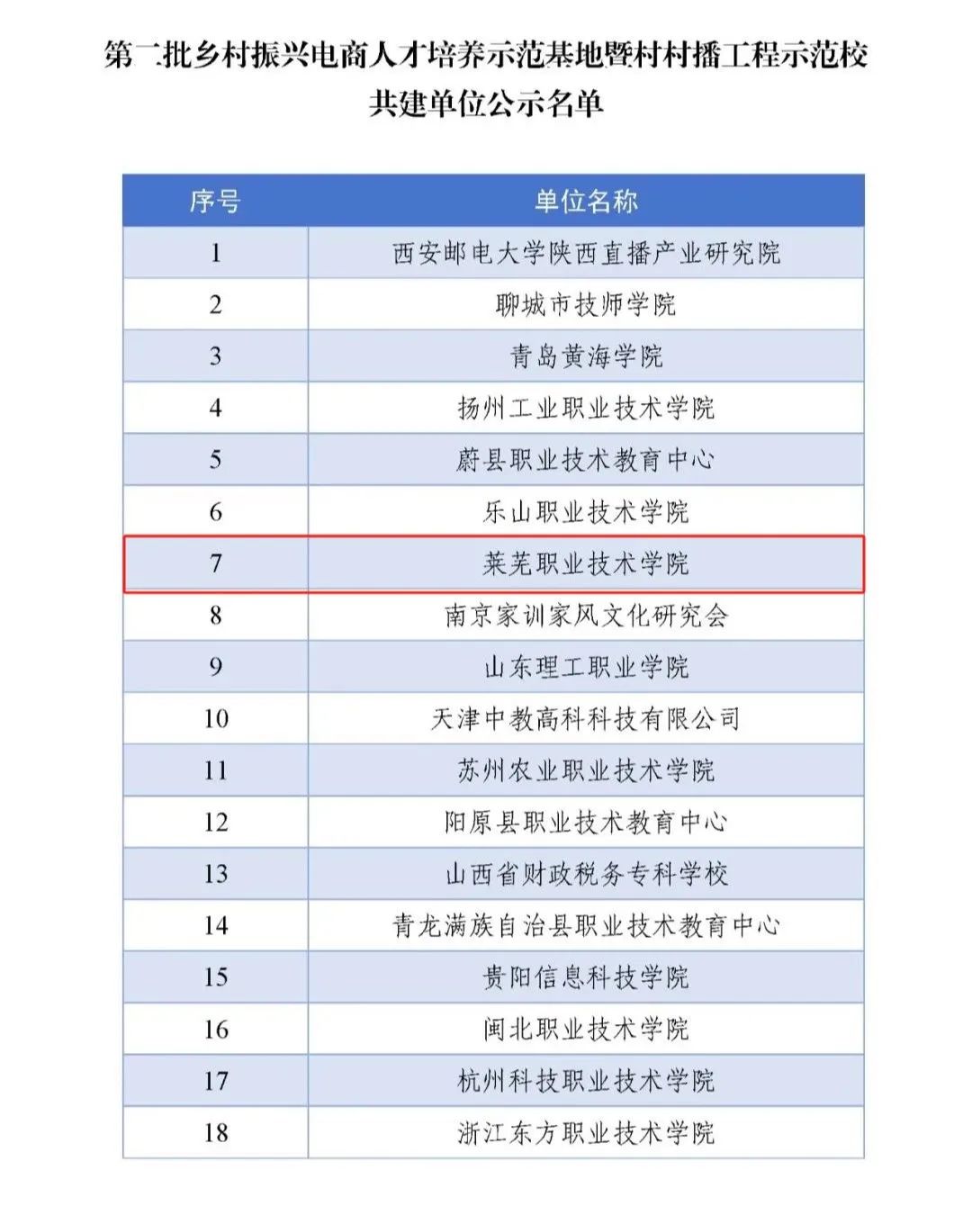 第二批乡村振兴电商人才培养示范基地