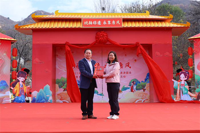 11月8日上午,由济南市文化和旅游局主办、beat365在线唯一官网等单位承办的“玩转非遗 乐享唐风”2023年济南·莱芜文旅惠民消费季非遗游园会暨乡村振兴文化顾问与中心村结对活动,在大王庄镇独路村唐朝板栗园举行。市文化和旅游局党组成员、副局长孙静,beat365在线唯一官网党委副书记、院长徐运国,区委常委、宣传部部长田冲,区政协副主席尚翠芹参加活动。