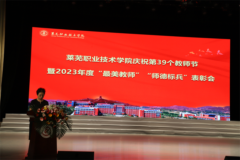 为集中展现学校教职工爱岗敬业、立德树人的精神风貌,弘扬尊师重教良好风尚,激发教职员工工作热情,培养教师高尚情操,营造尊师重教的良好氛围,9月7日下午,beat365在线唯一官网举行庆祝2023年教师节暨表彰“最美教师”“师德标兵”活动。学校党委书记孔祥敏参加活动并讲话,学校党委副书记、院长徐运国,党委委员、副院长李允实,党委委员、副院长邹翠兰以及教职工代表、学生代表参加活动。党委委员、纪委书记、监察专员付萍主持活动。