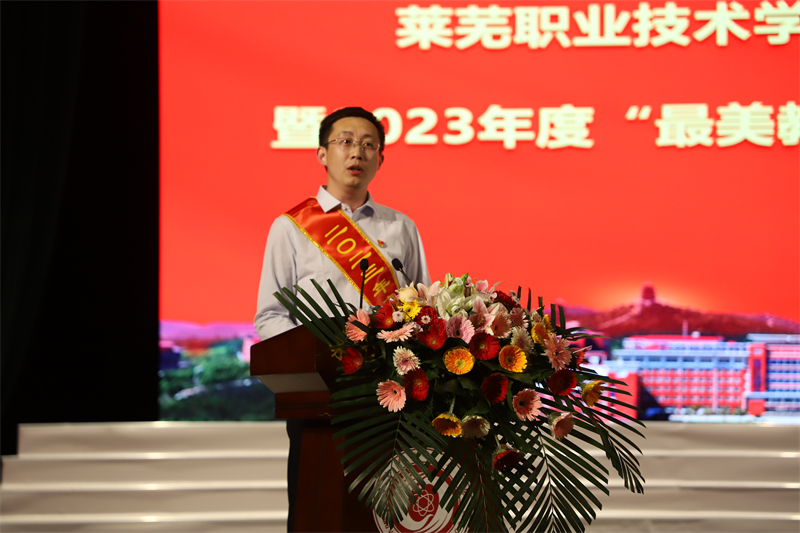 此外,“最美教师”代表智慧商贸与旅游系大数据与会计教研室主任陈媛,“师德标兵”代表智能制造系教师贾川分别作了发言。
