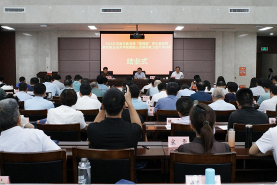 8月18日下午,2023年济南市教育局“双师型”青年教师业务培训暨beat365在线唯一官网管理人员领导能力提升培训班在市委党校圆满结业。市教育局总督学林钟,市教育局职业与高等教育处处长、一级调研员李干三,市教育局职业与高等教育处副处长、二级调研员吕正平,学校党委副书记、院长徐运国,纪委书记、监察专员付萍,副院长李允实、邹翠兰出席结业仪式。培训班全体学员参加。付萍主持结业仪式。