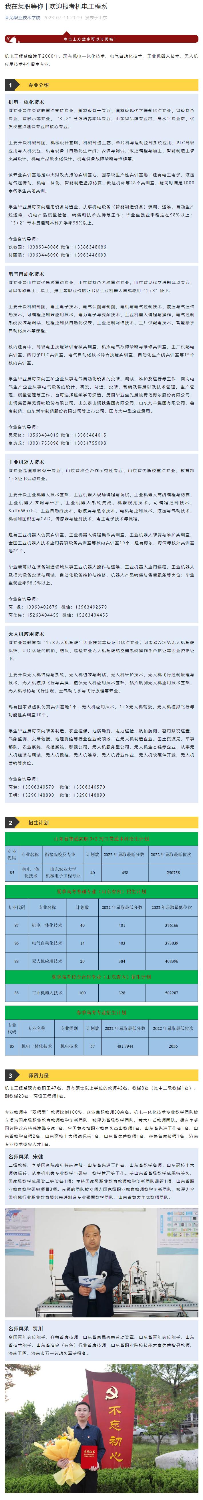 【山东教育发布】我在莱职等你 | 欢迎报考机电工程系