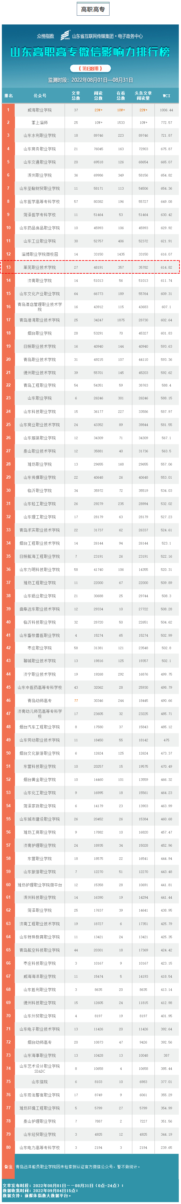 【山东省教育厅】山东教育系统微信影响力哪家强?8月榜单来了