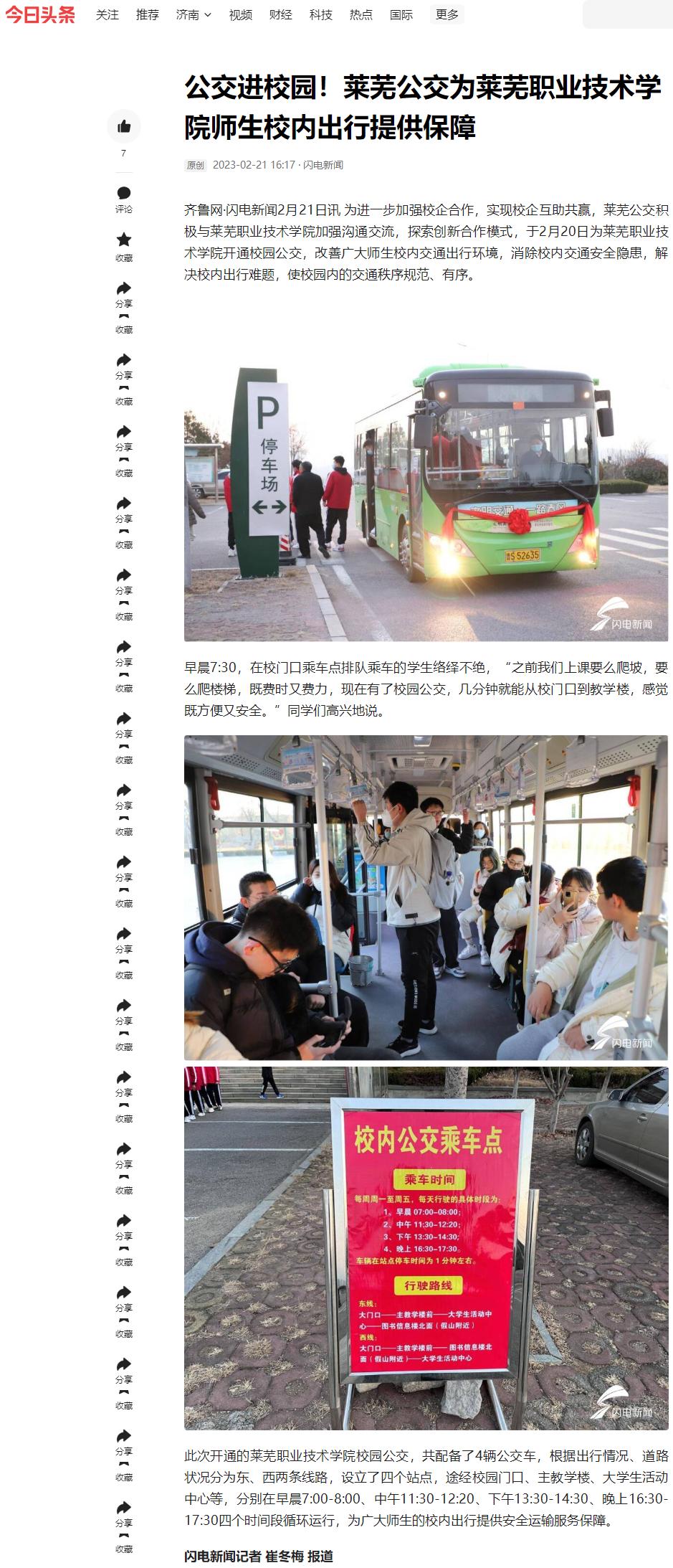 【今日头条】公交进校园!莱芜公交为beat365在线唯一官网师生校内出行提供保障