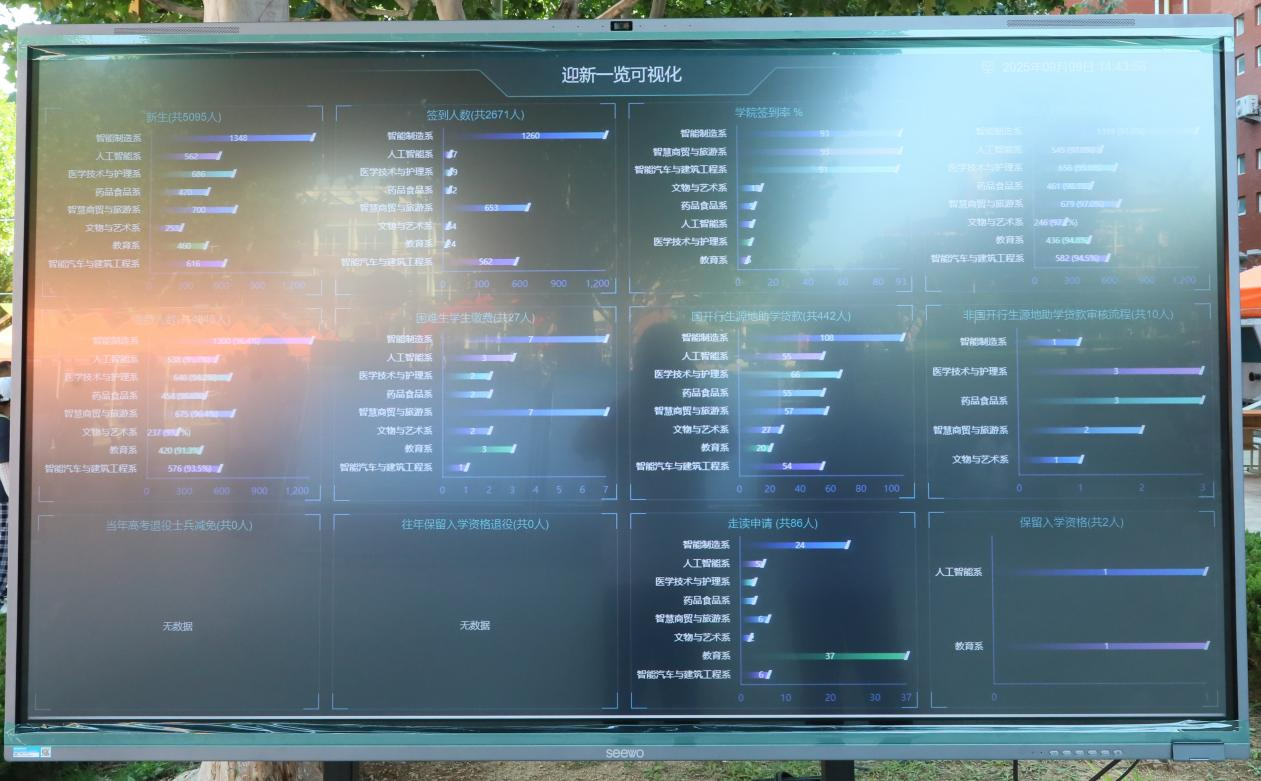 今年学校创新推出“莱职迎新”小程序,实现线上缴费、个人信息补录、走读审批、助学贷款审核、服兵役学费减免等报到全流程线上办理。系统实时显示新生报到数据,实现新生大数据实时化、可视化、智能化管理,真正做到“让数据多跑路,新生少跑腿”,以“莱职速度”为新生入学提供便捷高效的服务保障。