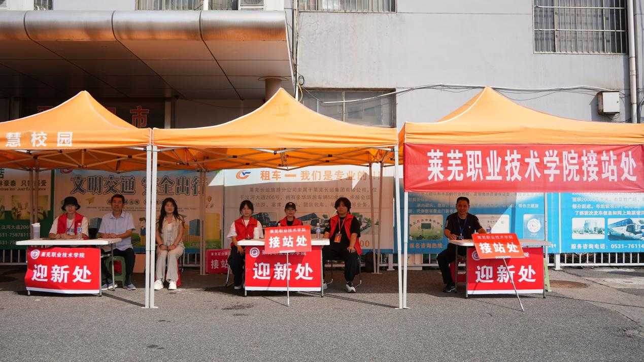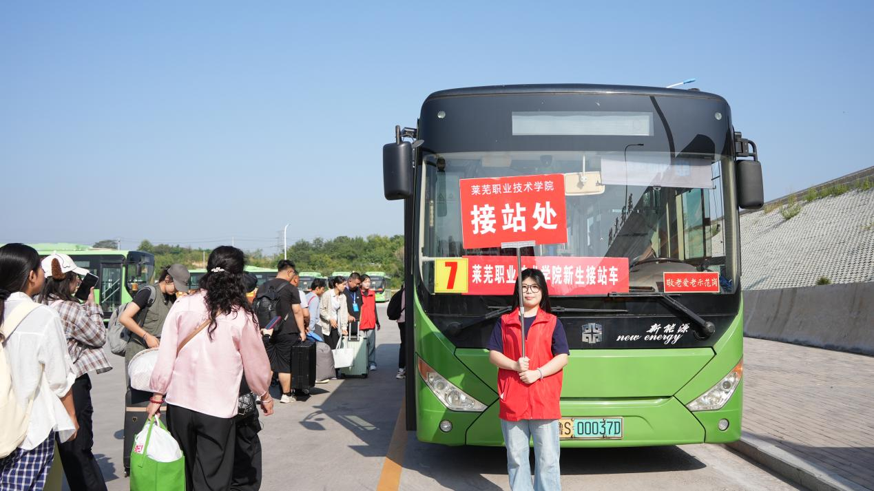 为打通新生入校“最后一公里”,学校在长途汽车站、高铁站设立接站处,工作人员举牌引导、帮运行李,让远道而来的学子一出站就感受到扑面而来的热情。迎新现场专设家长休息区,提供热水、小点心、酸梅汤等,方便家长休息的同时,助力其熟悉校园环境,用“莱职热情”让家长放心、学生舒心。物业部门还安排摆渡车运送行李,化身“暖心摆渡人”,展现高效专业的“莱职风采”。