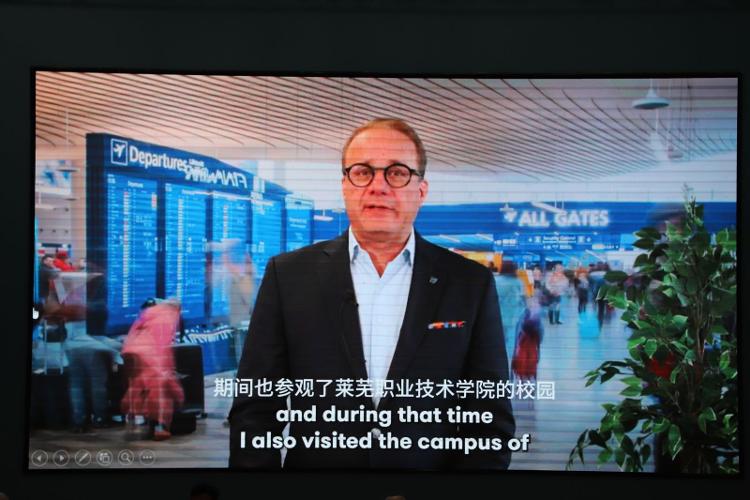 同时,芬兰万达市市长佩卡·蒂莫宁还通过视频连线向新生致以热烈祝贺,他表示,城市间的友好交流因教育合作而更加紧密,期待中芬康养学院成为连接两国社区与文化的桥梁。