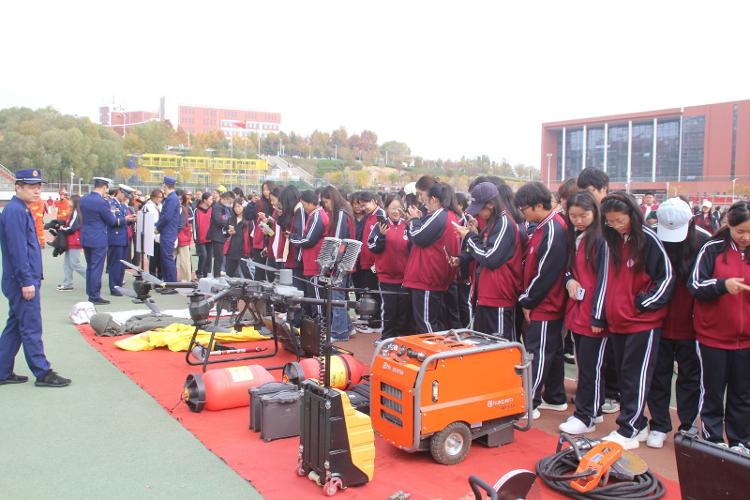 仪式结束后,与会人员共同观摩了学校与鹏泉消防救援站联合开展的灭火救援实战演练。演练模拟火情发生后的应急响应、人员疏散、高空救援等环节,过程紧凑有序,展现了学校应急处置机制与消防救援队伍的专业能力,为全体师生上了一堂生动的消防安全教育课。