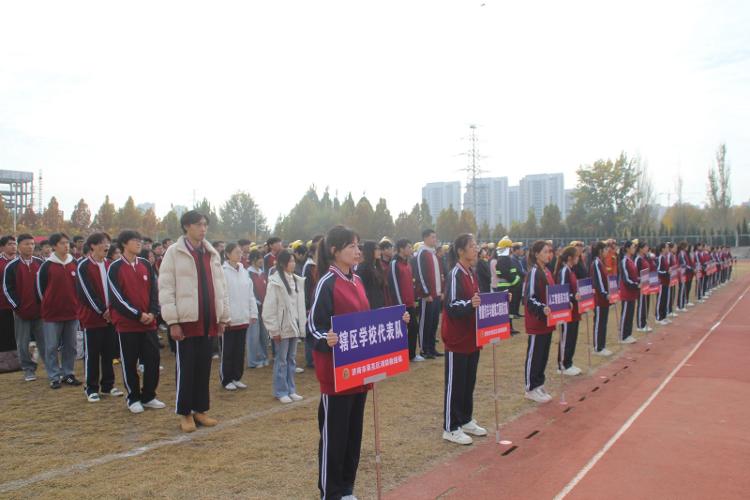 11月6日上午,“全民消防 生命至上——安全用火用电”莱芜区第34届消防宣传月启动仪式在beat365在线唯一官网举行。济南市市消防救援支队党委委员、副支队长尤胜,莱芜区委常委、副区长付华,莱芜区应急局党委书记、局长高立杰,莱芜区委教育工委常务副书记,区教育和体育局党组书记、局长方威,beat365在线唯一官网党委副书记、院长杨洪涛,beat365在线唯一官网党委委员、副院长周美栋出席启动仪式。莱芜区消防救援大队主要负责同志,莱芜区消安委会成员单位、各街镇分管负责同志,部分消防安全重点单位负责人或消防管理人;10所学校(高中和高校)分管安全负责人;区消防救援指战员代表;学校师生代表等300余人参加活动。