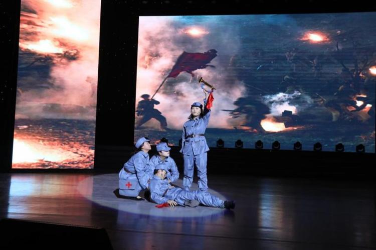 晚会在气势磅礴的开场鼓《锣鼓喧天》中拉开帷幕。整场晚会分为“盛世欢歌”“缤纷校园”“热血青春”“不忘初心”四个篇章。舞龙舞狮《男儿当自强》充分体现了民族精神、展示出团结的力量;戏曲舞蹈《再遇梨花颂》,传达了对真挚情感的赞美和对美好生活的向往;战术表演《热血青春》,直观演示了基础战术技巧,展现莱职学子不屈不挠的奋进姿态;《不忘初心》重温红军战士用生命和热血铸就的雄壮历史,感受革命先辈用理想和信念丈量的伟大远征,激励莱职学子走好新时代长征路……激昂的旋律铿锵回响、点燃全场。