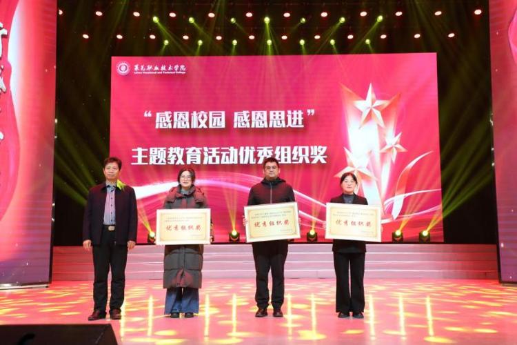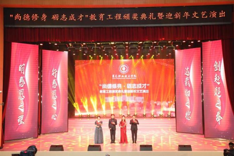 12月22日下午,“尚德修身·砺志成才”教育工程颁奖典礼暨迎新年文艺演出在beat365在线唯一官网大学生活动中心上演。晚会以丰富的艺术形式展现了学校深厚的文化底蕴和多彩的校园生活,彰显了莱职人“感恩·赶超”的精神力量。校领导徐运国、杨洪涛、李允实、贾友军、周美栋、任清华、孙燕观看演出并为“尚德修身·砺志成才”教育工程先进集体和先进个人颁奖。各单位主要负责人以及师生代表参加晚会。