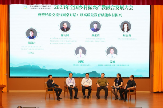 学校党委副书记、院长徐运国应邀出席大会主论坛圆桌对话,介绍了学校以高质量教育赋能乡村振兴的典型经验和做法。随后就学校在产教融合过程中,如何创新人才培养机制,加强乡村企业和职业院校的深度合作,形成校企良性互动,赋能乡村振兴高质量发展等方面进行了点评。