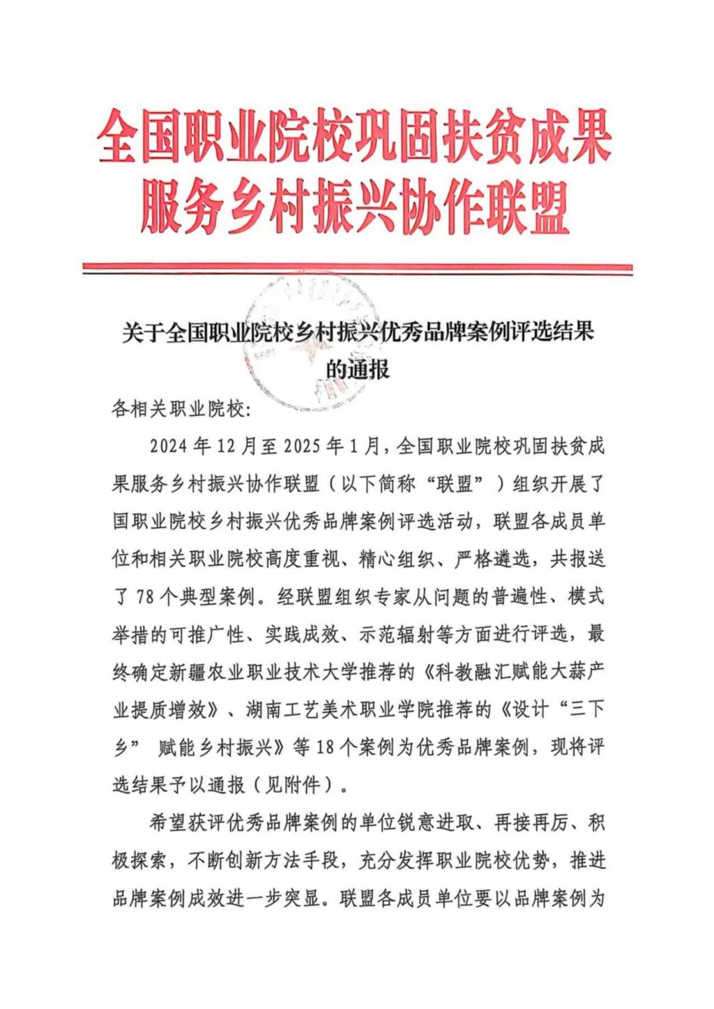 本次案例评选活动由全国职业院校巩固扶贫成果服务乡村振兴协作联盟组织开展,共收到来自全国的78个典型案例。经联盟组织专家从问题普遍性、模式可推广性、实践成效、示范辐射等多维度严格评审,最终18个案例脱颖而出。学校推荐的案例聚焦“发展新质生产力带动乡村振兴”,通过助力毕业生返乡创业,将职业教育资源转化为乡村振兴动能,其经验与模式具有鲜明的创新性和推广价值。