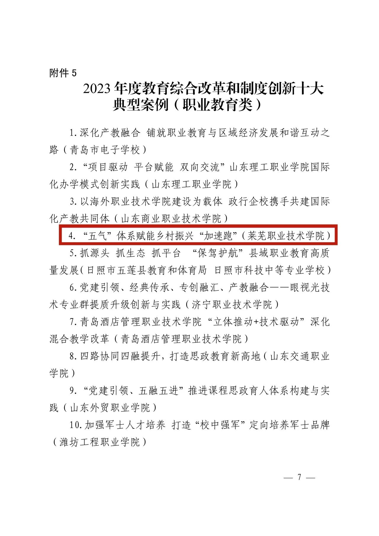 这些获奖案例涵盖了乡村振兴服务体系改革、产教融合以及实践经验分享等多个方面。其中,“五气”体系赋能乡村振兴典型做法被山东省教育厅和济南市教育局评为2023年度教育综合改革和制度创新十大典型案例,2项案例入选山东省职业教育质量报告(2023年)乡村振兴典型案例,1项入选山东软科学研究会产教融合典型案例,1项入选全国乡村振兴产教融合联盟2023年教育赋能乡村振兴典型案例,1项入选中国小康建设研究会2024年全国乡村振兴优秀案例,1项入选中国职业技术教育学会“职业院校培养扶植‘新农人’共富乡村典型案例”。