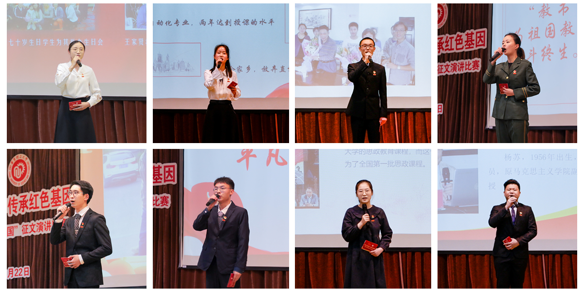 8位选手提前两周采访了原机械与动力工程学院王家贤夫妇、原化工学院徐佩若、原理学院党总支书记阴其俊、原马克思主义学院杨苏几位老教授,听他们讲述奉献、服务、坚守与奋斗的故事。而在比赛现场,选手们通过声情并茂的演讲向全体师生讲述了这些老一辈优秀共产党员的感人事迹,深刻感悟老一辈教育者的初心使命。